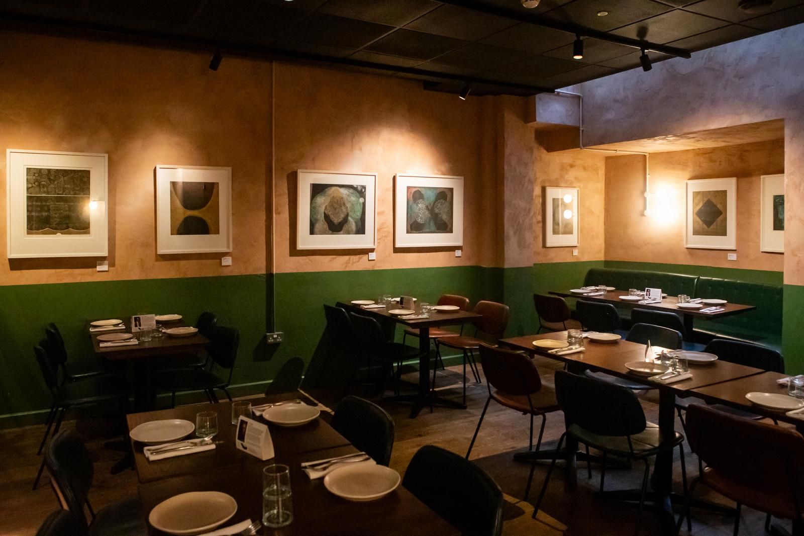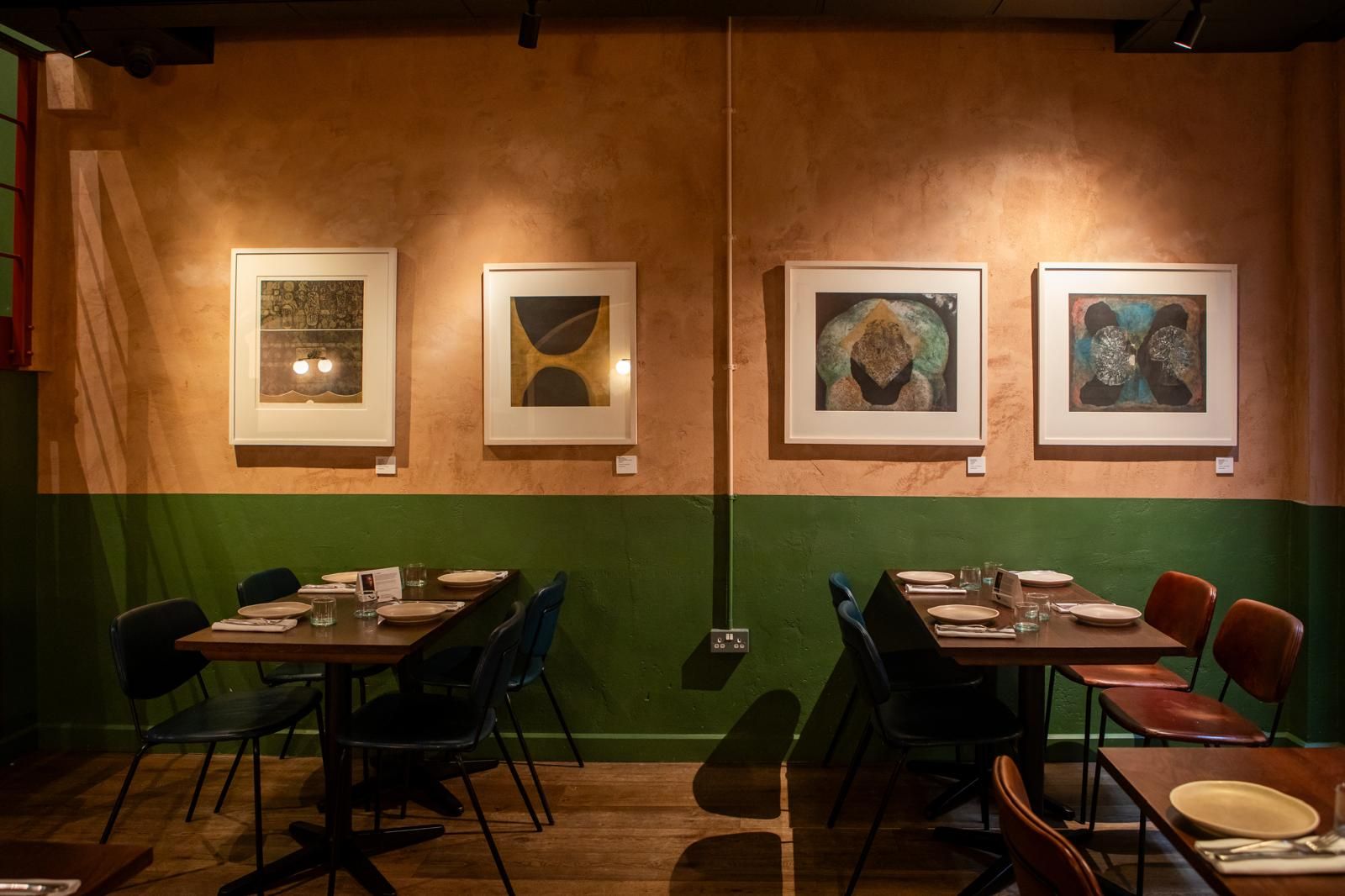 We transformed the dining space at a restaurant in central London with a carefully curated art hang designed to complement the restaurant’s warm, earthy tones and modern aesthetic. Featuring a selection of abstract and textural artworks, the pieces were arranged to create a balanced visual flow across the space, enhancing the intimate and contemporary atmosphere. Each artwork was thoughtfully positioned to interact with the lighting and architectural features, resulting in an inviting and cohesive dining experience where art and ambiance work seamlessly together.